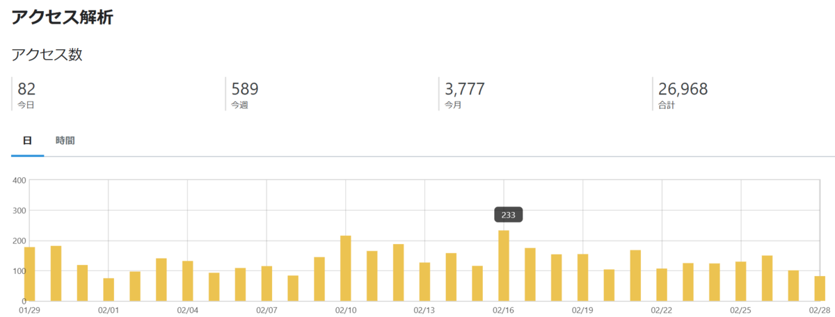 - 2025年2月のアクセス数時系列グラフ ※スクリーンショットは2025/2/28に取得